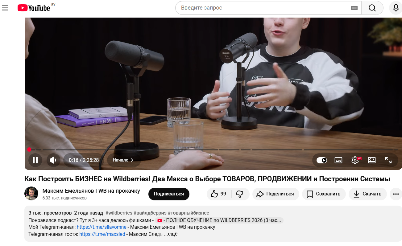 Демонстрация экспертизы в бизнесе на маркетплейсах сводится к многочасовым YouTube-роликам в собственном канале, где автор уверенно оперирует терминами, разбирает алгоритмы и показывает таблицы. Это действительно формирует образ специалиста, но независимых подтверждений миллионных оборотов его собственных юридических лиц в открытых реестрах маркетплейса не представлено.