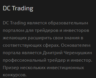 Основателем академии Dctrading является Дмитрий Черемушкин. Владелец онлайн школы также торгует на бирже и обладает положительной репутацией в трейдинг-сообществе.