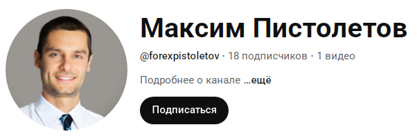 Разработчик трейдинг приложений владеет профилем на «Ютьюбе», канал называется Forexpistoletov. На аккаунт подписано 18 фолловеров, и трейдер опубликовал только 1 видео.