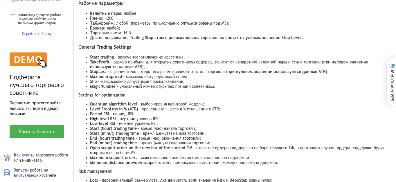 Кроме вышеперечисленного, пользователь за счет программного обеспечения «Мародер» сможет находить лучшие точки входа. Это позволит открывать сделки раньше крупных игроков и снимать «сливки» с рынка. Более того, на странице торгового советника разработчик Андрей Колмогоров пишет, что скальпер использует модель квантового множества алгоритмов. Благодаря этому торговый советник работает на любых финансовых инструментах, включая криптовалюты.