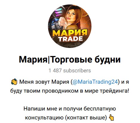 Мария Торговые будни — Телеграмм-канал, за созданием которого стоит якобы опытная девушка-трейдер. Она специализируется на бинарных опционах, обещает своим подписчикам ежедневные бесплатные сигналы. Рассмотрим канал трейдера поближе и проверим, можно ли доверять Марии.
