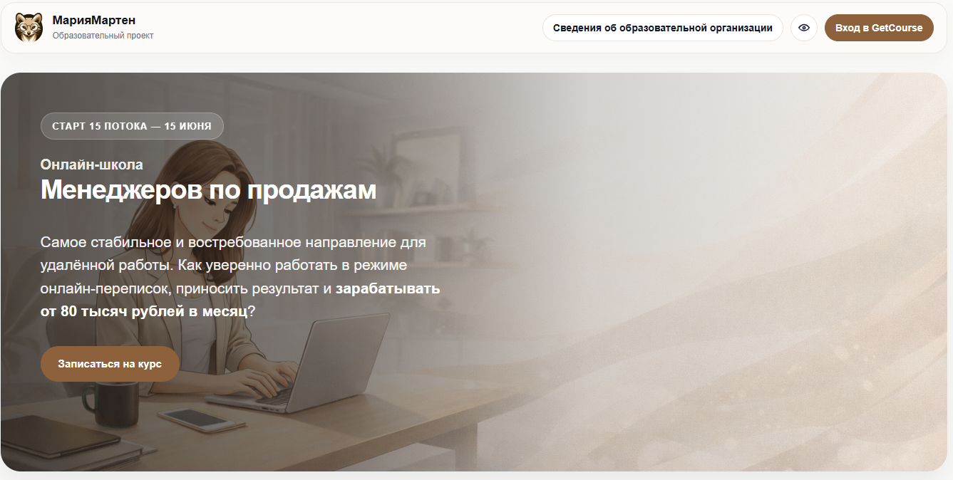 Мария Мартен – автор курсов по профессии менеджер по продажам, создательница собственной онлайн-школы и блога. Девушка утверждает, что делится только нужными знаниями, позволяющими стать востребованным специалистом. Мария Мартен курс отзывы на независимых площадках еще не получил. Мы проверили предложения от эксперта, разобрали ее социальные сети.