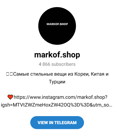 В интернете нет отзывов о Markof Shop, а комментарии к постам закрыты. Похоже, автор канала совсем не стремится к публичности и открытости.
