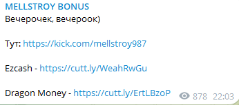Мы не видим в ТГ Mellstroy Bonus никакой пользы, зато этот ресурс имеет множество признаков скама: