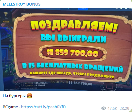 Mellstroy Bonus — это просто хайповая замануха для лохов, где автор хвастается фейковыми выигрышами и сливает реферальные ссылки на казино. Не ведитесь на этот скам, ребята!