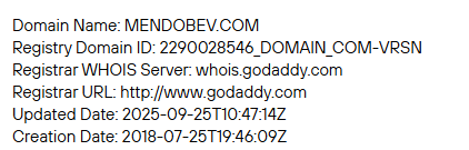 Mendobev выглядит как фальшивый брокер. На сайте много ложной информации. Проект зарегистрирован только в 2025 году. Лицензий и разрешений на работу вообще нет.