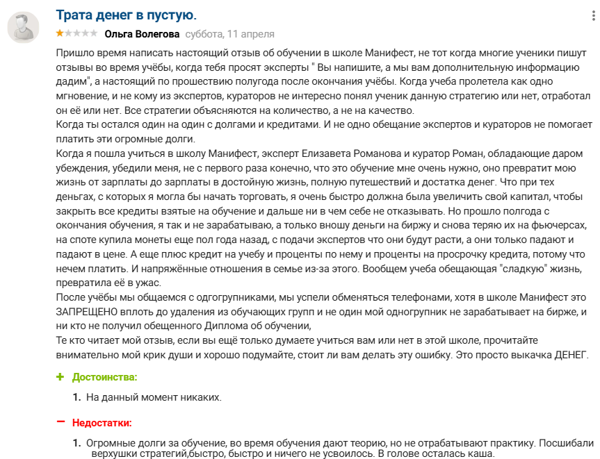Пользователи жалуются на то, что им пришлось брать кредиты на оплату обучения, а на нем давали только базовую информацию, которая есть в открытом доступе.