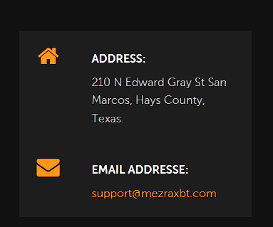 На сайте говорится, что Mezra XBT – аккредитованная компания, но кем – не поясняется. В качестве контактных данных указаны адрес в США, электронная почта саппорта и форма для обратной связи. Проверка выяснила, что такого e-mail как support mezraxbt com не существует.