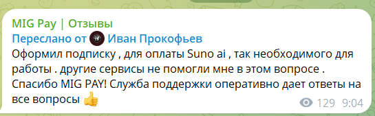 Иван Прокофьев утверждает, что это единственный сервис, который помог ему оформить подписку на Suno ai и тоже хвалит службу поддержки.