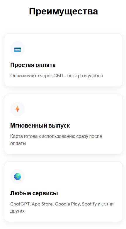 - Интерфейс платформы удобный как на сайте, так и в боте для оформления карты – вся процедура происходит в несколько кликов и занимает около пары минут.