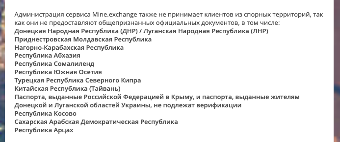 Но при этом Соглашение и споры, связанные с ним подлежат рассмотрению в соответствии с законодательством Белиза. Стоит отметить, что на сайте площадки есть целый перечень запрещенных юрисдикций, в который, в том числе, входит РФ.