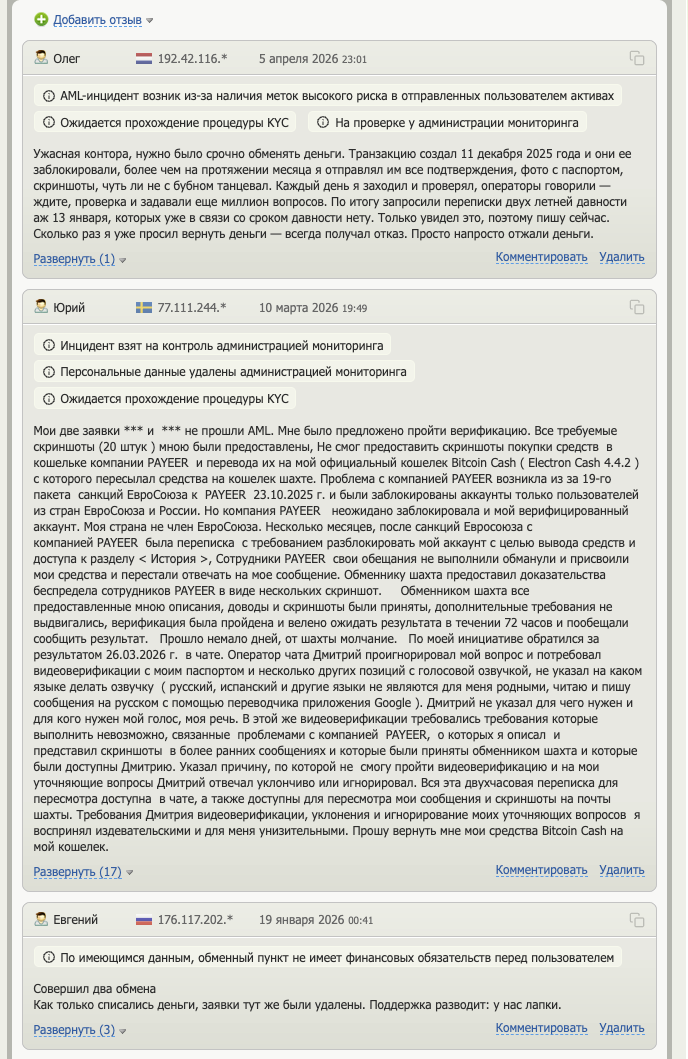 Если посмотреть количество отзывов только на БестЧейндже, то в в целом эти заявления не вызывают подозрений. О сервисе написано более 66 тысяч отзывов. При этом более 1 тысячи претензий, которые были сняты. В основном они касаются требований по прохождению верификации.