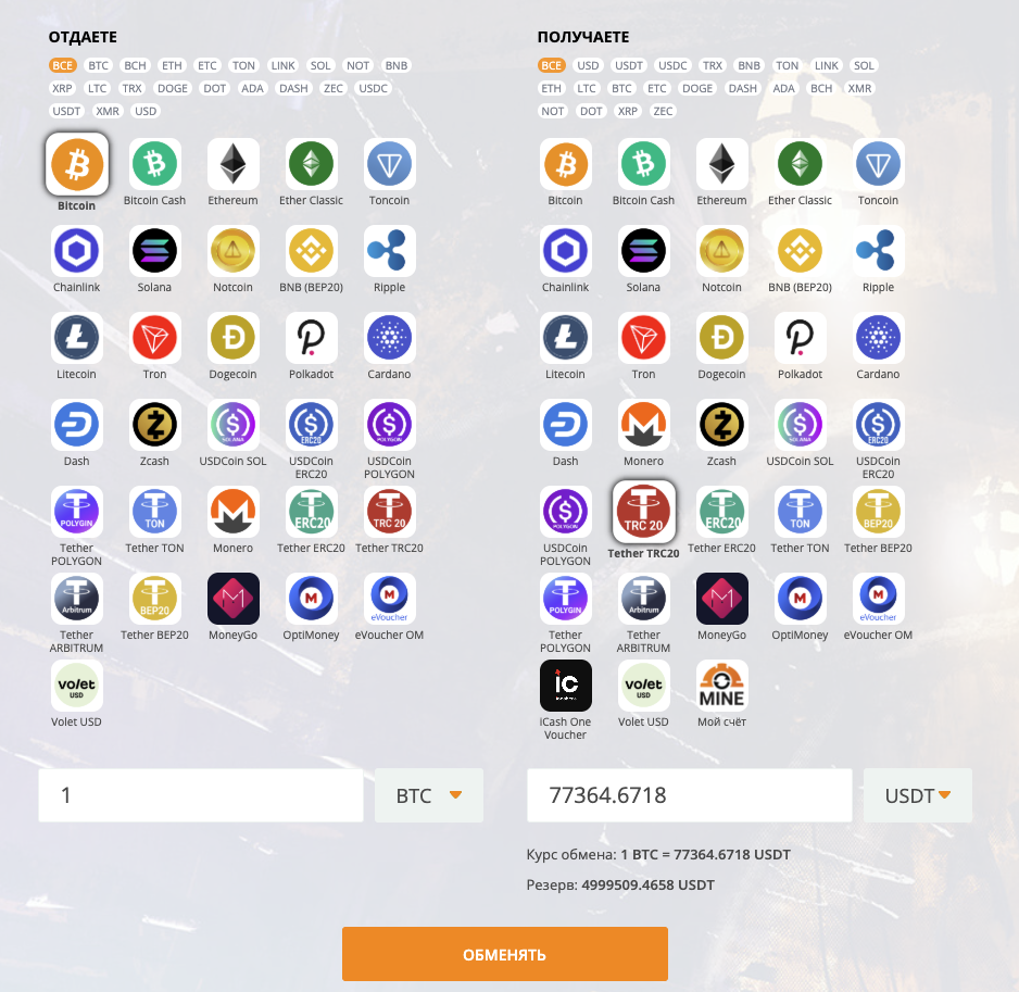 Mine Change – достаточно старый криптовалютный обменник, на сайте которого предлагают обмен цифровых активов с выводом на карты разных банков и платежных систем.Сервис достаточно популярен у пользователей, представлен на разных мониторингах. Mine Change обменник отзывы собрал многочисленные и преимущественно положительные. В обзоре расскажем подробнее о проекте.