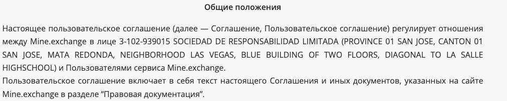 В Правилах обмена можно найти информацию о том, что за проектом стоит компания SOCIEDAD DE RESPONSABILIDAD LIMITADA, зарегистрированная в Сан-Хосе.