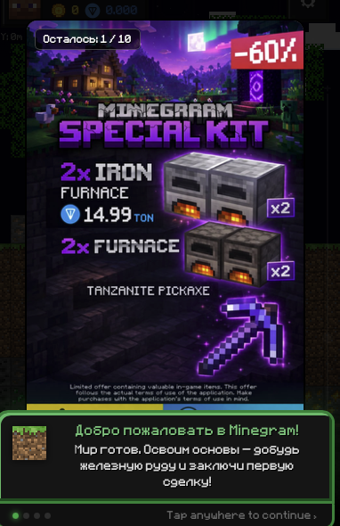 Minegram – приложение на базе Телеграм, вдохновленное популярной игрой Майнкрафт. Пользователям обещают возможность исследовать мир, интересную крафт-систему, а также заработок на торговле внутриигровых ценностей. Но при ближайшем рассмотрении проекта возникают серьезные подозрения, связанные с тем, что в игре можно заработать. В обзоре расскажем подробнее об игре.