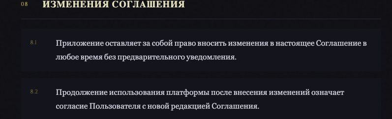 - в Соглашении прописано, что платить проект не должен, а его авторы могут менять условия в любое время.
