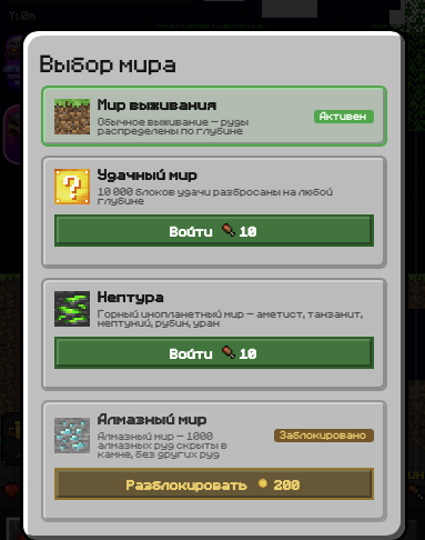 Внутри игры доступны несколько миров. Войти в которые можно бесплатно, за энергию или за внутреннюю валюту – MNG.