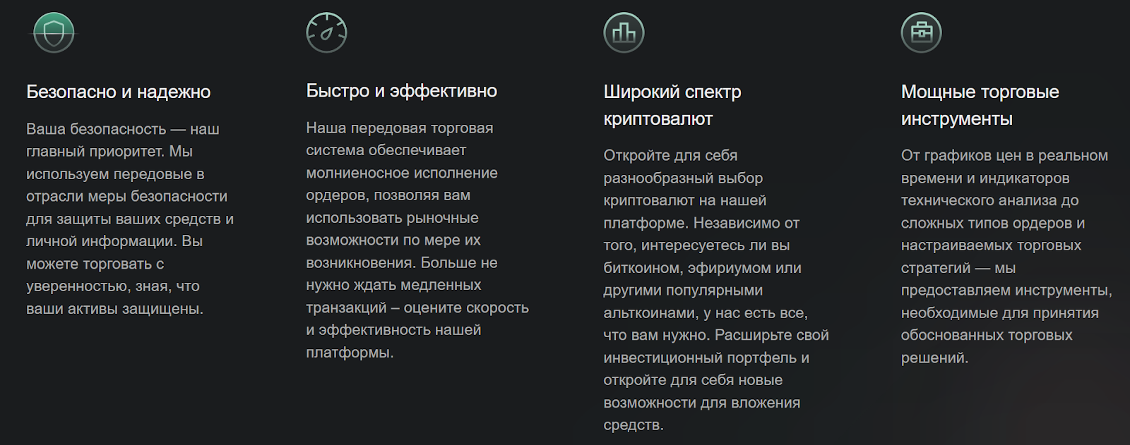 - возможность торговли с применением разных криптовалют.