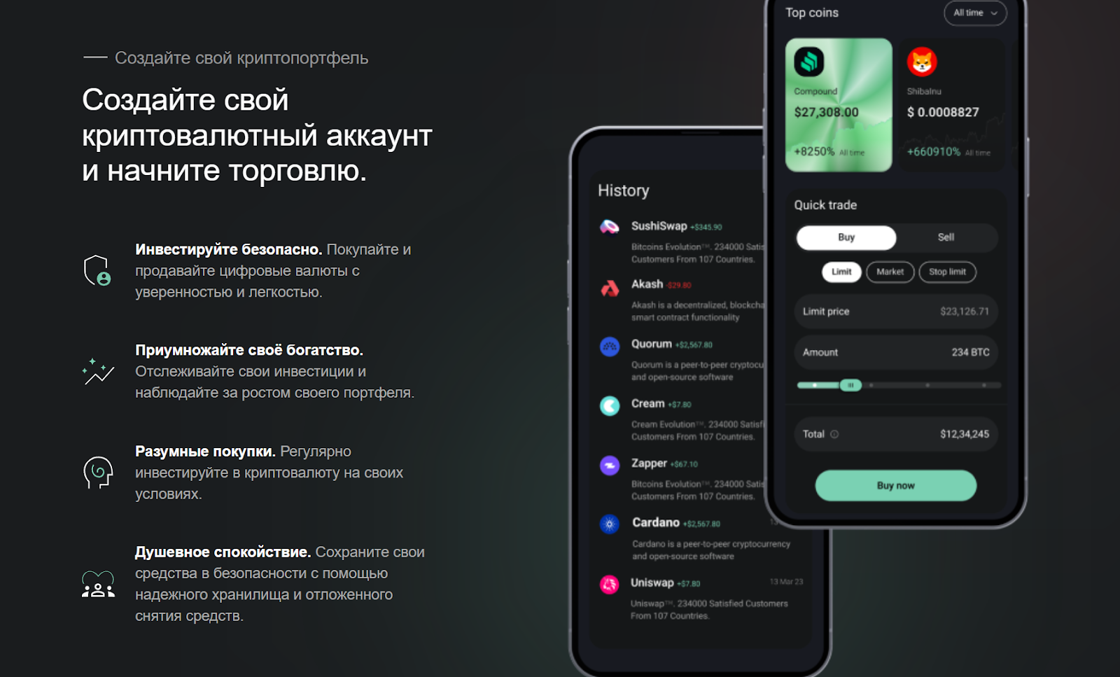 - P2P-торговля без посредников и с участием других пользователей;