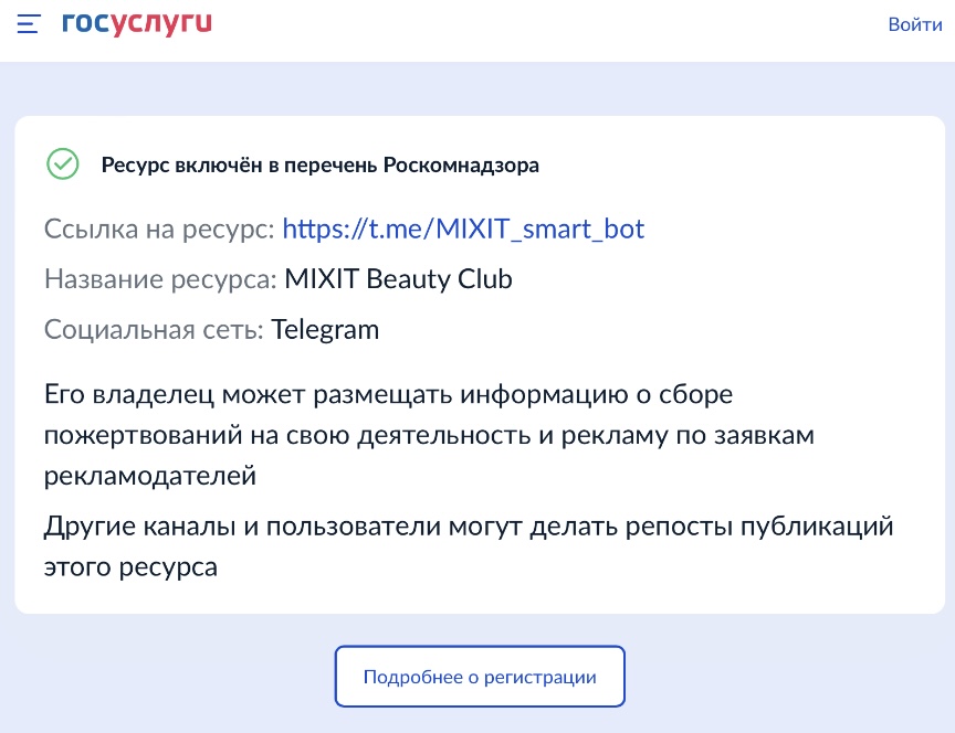 - официальный статус — есть положительная позиция в перечне Роскомнадзора;