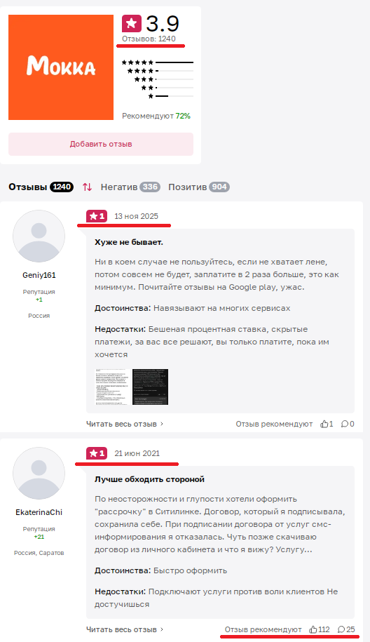 Все недовольные рассказывают одно и то же, что сервис обманывает на деньги, берет скрытые комиссии, начисляет высокие проценты и подключает левые услуги. Такие отзывы собирают множество поддерживающих лайков.