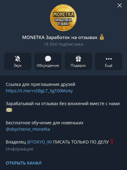 Монетка Заработок на отзывах – это телеграм-канал, который якобы дает возможность получать доход в интернете. В сообществе заказчики размещают свои задания, а пользователи могут на них откликаться. Обычно оплата предусмотрена за написание комментариев, однако есть и другие активности. Далее в материале мы расскажем, действительно ли проект может помочь с заработком в сети или лучше поискать альтернативные методы.