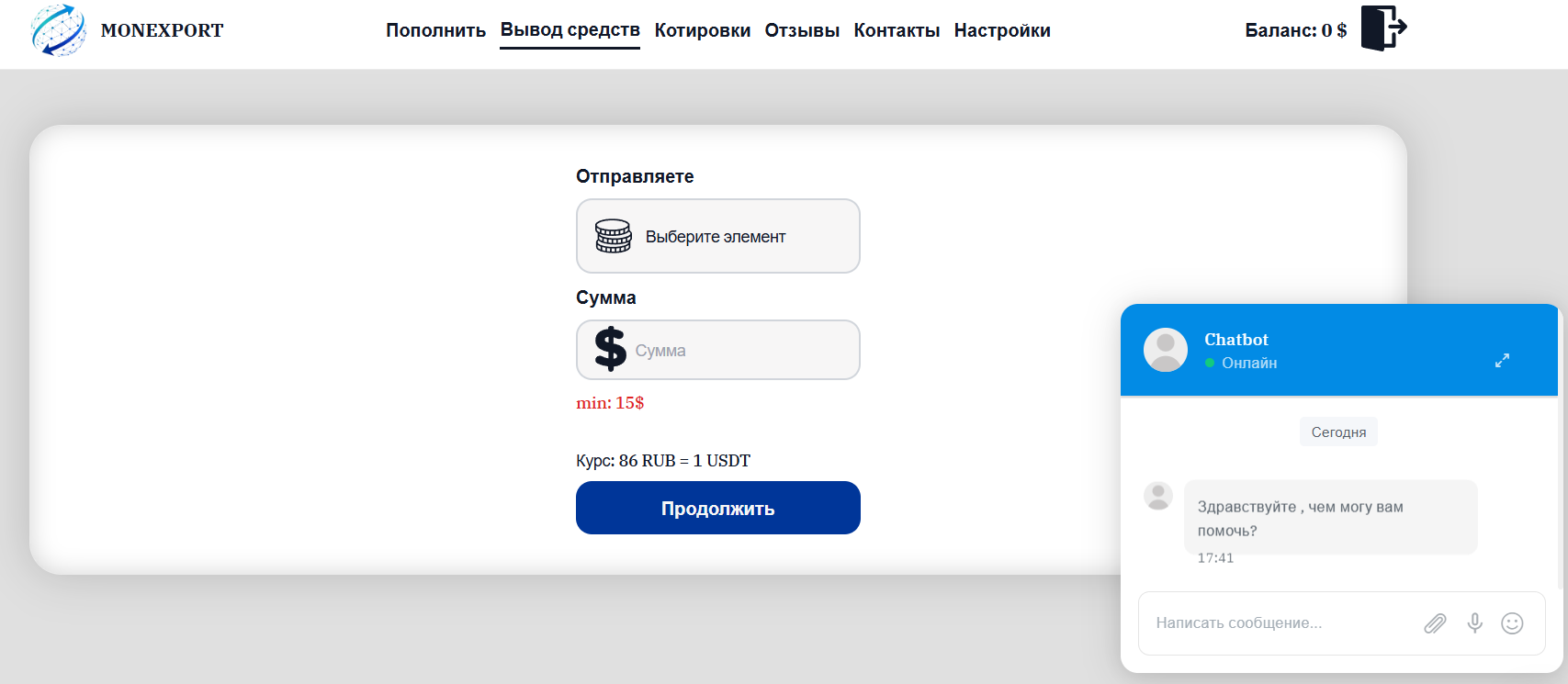 Внутри обменника указан достаточно невыгодный курс обмена, который отличается от рыночного примерно на 10 рублей за доллар. Уже этого достаточно для того, чтобы понять, что пользоваться платформой невыгодно и бессмысленно. При этом баланс аккаунта отражается в баксах, внести на него можно практически любой токен. Но когда человек пытается понять, как вывести деньги с monexport com, он сталкивается с проблемами. У него начинают требовать оплатить комиссии, верификационные платежи, налоги и прочие выдуманные платежи. Деньги начинают требовать без конца и до тех пор, пока человек не поймет, что его просто обманули.