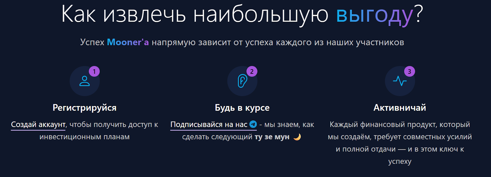 Все указанные преимущества Mooner pro сопровождаются общими формулировками, без конкретных данных. Тут не указаны прозрачные механизмы реализации, не проводится демонстрация результатов или аудитов. Все вычисления выглядят как гипотетические или прогнозные. Они не подтверждены фактическими данными.