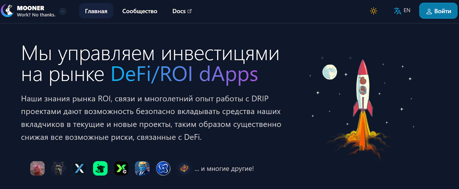 Mooner pro позиционируется как финансовая инвестиционная платформа, открытая для многих пользователей. Она предлагает инвесторам инструменты для хеджирования и управления вложениями. Тут ведется работа с проектами DeFi и другими криптовалютными источниками доходов. На официальном ресурсе проект обещает помощь в минимизации рисков, создает условия для более простого участия и получение доходов. Это реализуется через финансовые планы с ежедневными начислениями. В этой статье мы рассмотрим, стоит ли инвестировать в данную платформу или это мошеннический проект.