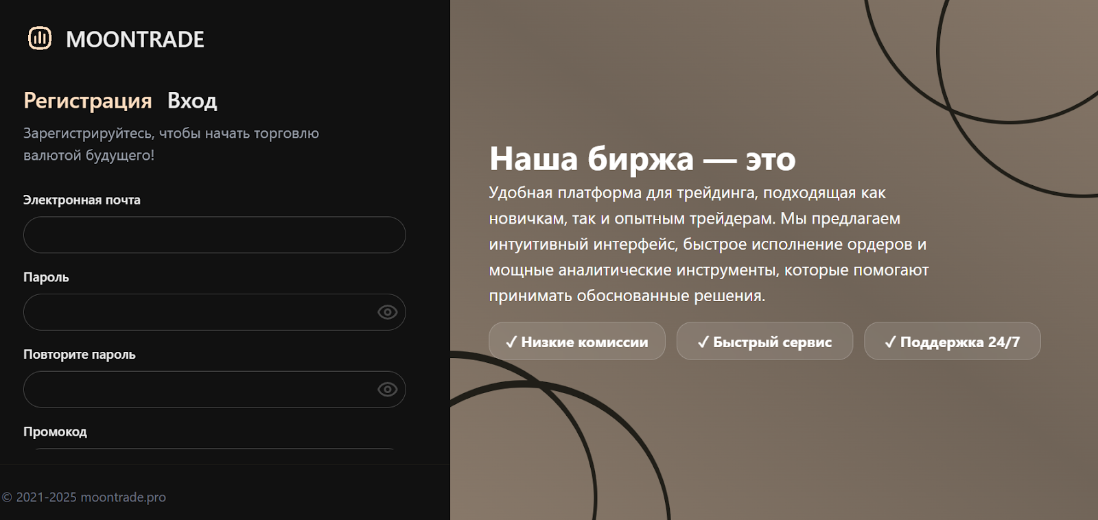Moontrade Pro – очередная ловушка для доверчивых: обещают торговлю валютой будущего, а на деле – обычная игра без возможности вывода средств. Скрывают истинную суть, заманивая новичков. Не ведитесь на этот развод!
