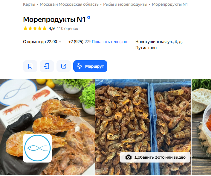 Администратором проекта выступает некий Дмитрий, который публикует фото и видео с товаром. Но ни на одном из них не указан магазин «Морепродукты №1». Вероятнее всего, аферист ворует контент у реальных интернет-магазинов со схожим ассортиментом.