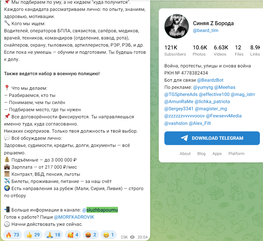 Обзор скам-проекта в Телеграме Morfkadrovik: анализ платформы с вакансиями в ВС РФ Sluzhbapoumu и отзывов пользователей