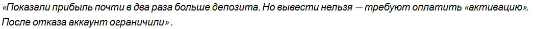 - Брокер работает нелегально, клиент не сможет никуда пожаловаться на скамеров, если они его обманут;