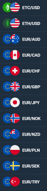 На Moxi Eme Co доступны около сотни активов. В их числе валюты, криптовалюты, акции российских и иностранных компаний. Широкий набор вариантов — большое преимущество платформы.