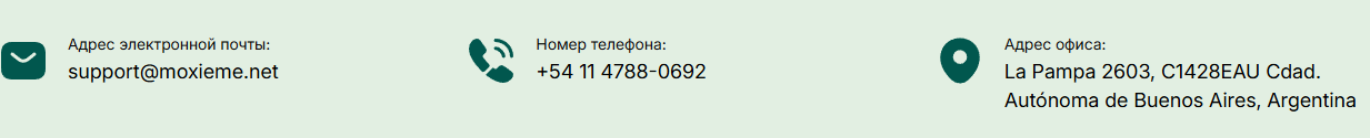 Единственный рабочий способ связи с техподдержкой — e-mail Support @ Moxieme net. Аргентинский номер телефона и оффлайн-офис явно не подойдут большинству людей из других стран.
