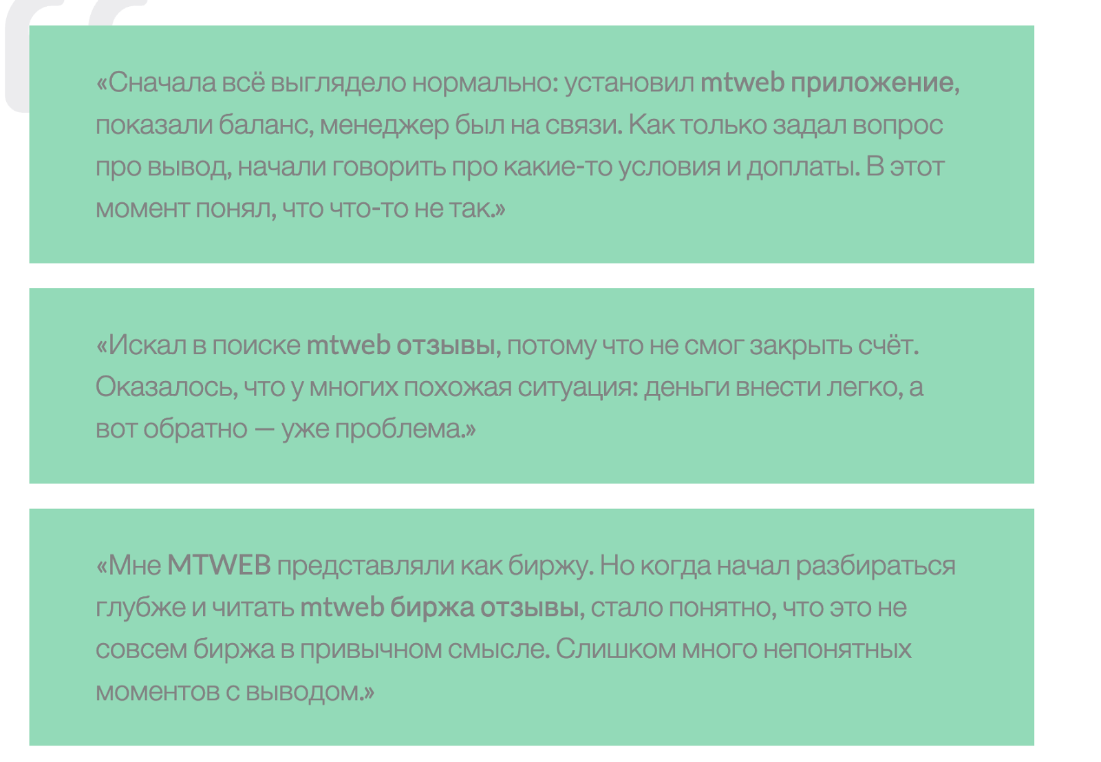 Наличие отзывов о бирже Mtweb