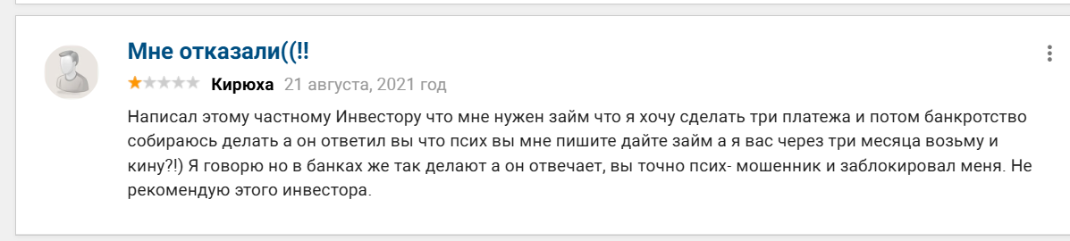 Оценка предложений инвестора Антона Валентиновича Мурзина, отзывы клиентов об услугах кредитора