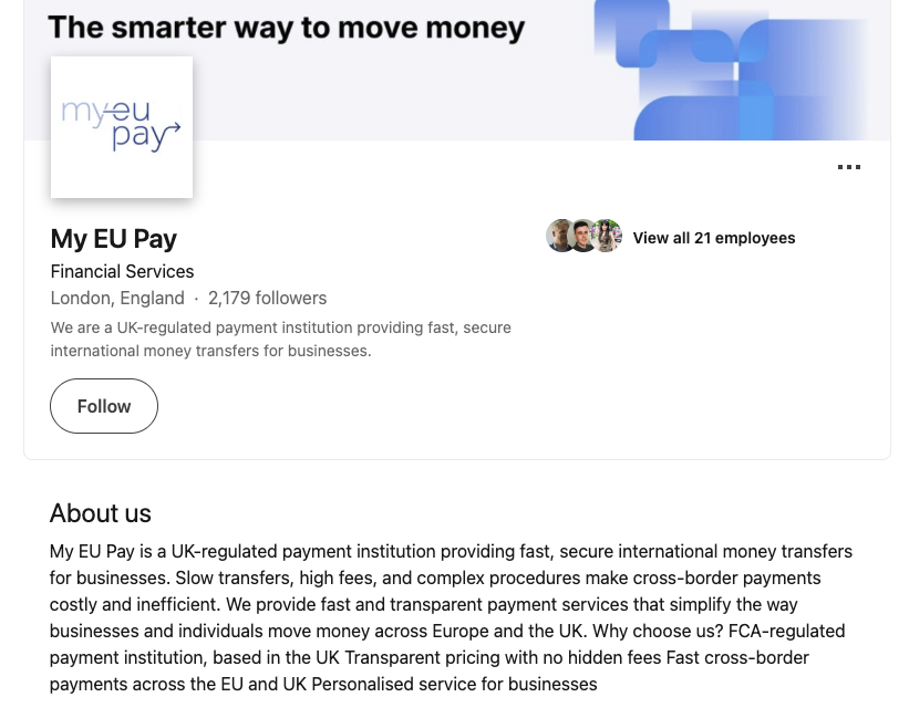 Связаться с представителями платформы предлагают только по адресу электронной почты support@myeupay.com. Сервис представлен только в 1 социальной сети – LinkedIn. За его деятельностью следит более 2 тысяч пользователей.