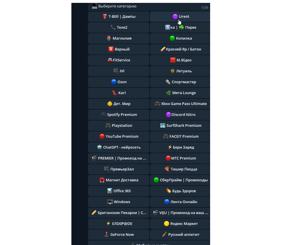 Для того, чтобы купить скидку на игровой софт или тариф мобильной связи, необходимо пополнить свой счет в аккаунте ТГ бота.