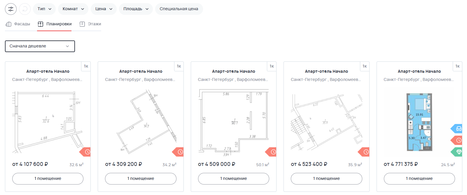 Стоимость помещений начинается от 4 107 600 рублей. При этом в некоторых апартаментах уже предусмотрена мебель, размещен постоялец: