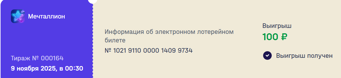 Владелец билета всегда может узнать на сайте, выиграл он или нет. В случае победы полученные средства зачисляются на баланс в приложении.