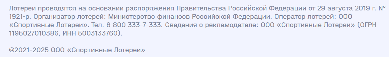 В официальных источниках есть информация о том, что данный бренд принадлежит ООО «Спортивные Лотереи» и создан по распоряжению правительства РФ. Это гарантирует надежность сервиса и создает ему большой кредит доверия.