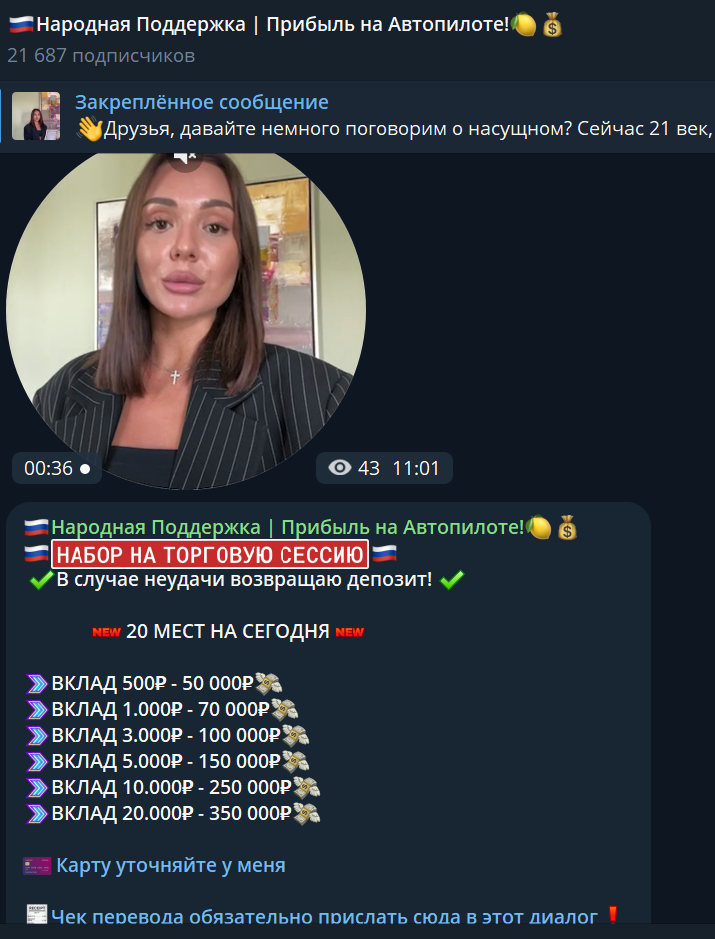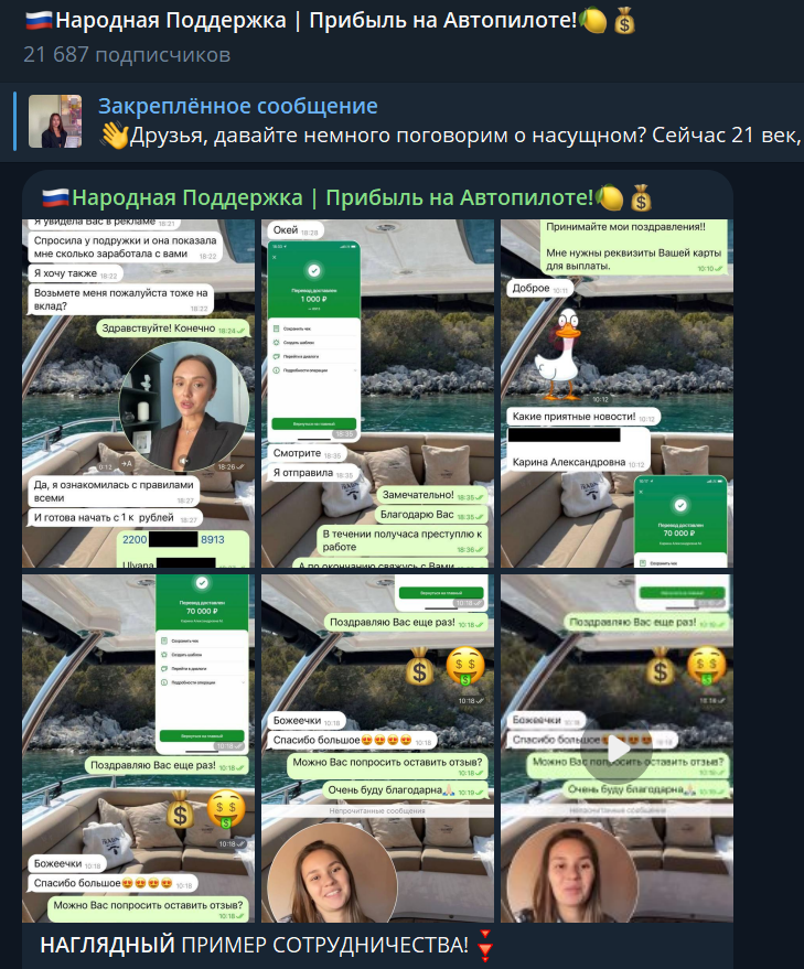 Обещания «Народной Поддержки» о баснословной прибыли при минимальных вложениях выглядят крайне сомнительно. Накрутка подписчиков и отсутствие прозрачности в деятельности вызывают серьезные опасения. Риск потери средств слишком велик.