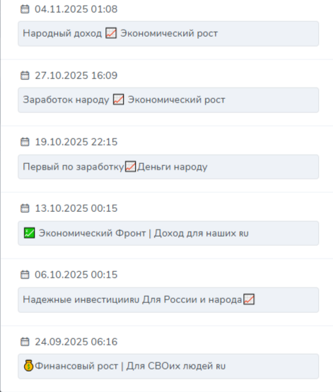На ноябрь 2025 в канале 20 189 подписчиков. Запущенный в 2015 году старинный паблик был, по всей вероятности, приобретен Михаилом в сентябре 2025 для развертывания там актуальной деятельности. За полтора месяца проект сменил название шесть раз. Он зывался «Финансовый Рост Для своих людей ru», «Заработок народу Экономический рост» и тд.