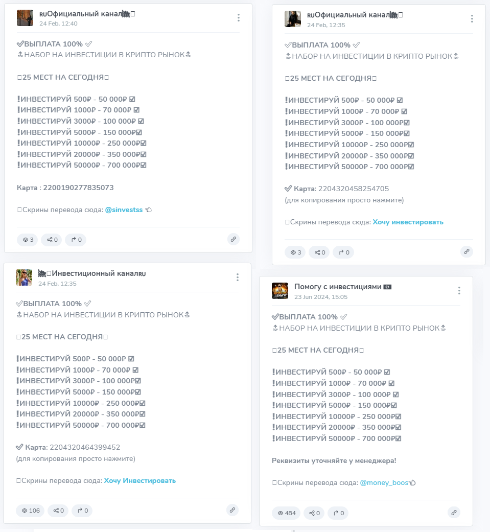 Автор обещает возврат средств в случае неудачной сделки. Ранее мы выяснили, что проект является шаблонным мошенническим ресурсом. В подтверждение этому мы нашли еще то, что на других скам-каналах публикуются идентичные расценки заработка.