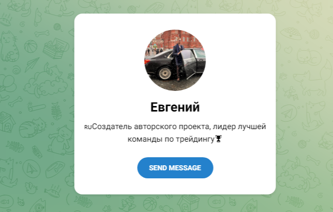В описании блога нам удалось прочитать, что канал принадлежит якобы крупной инвестиционной команде, которая уже несколько лет помогает клиентам зарабатывать практически без рисков. В описании аккаунта мужчины указывается, что его зовут Евгений и он является создателем трейдинг-проекта.