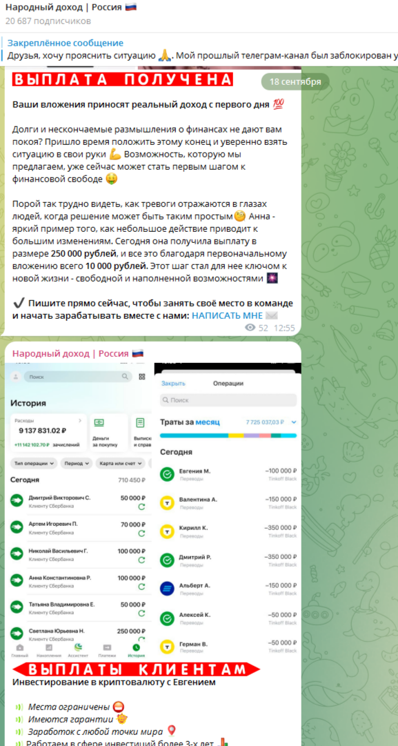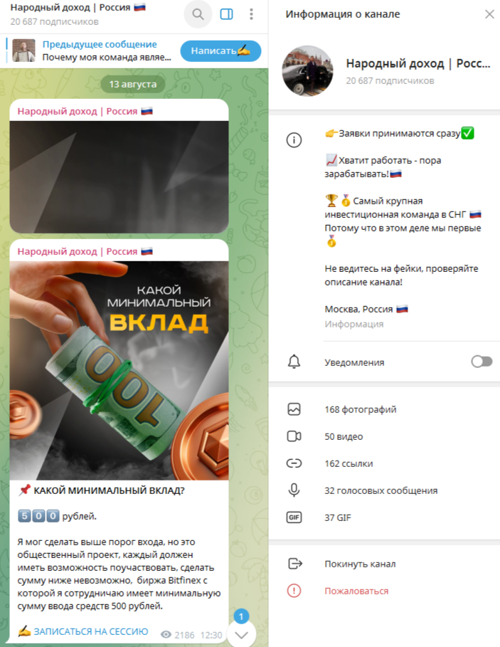 Как мы выяснили, проект является шаблонным лохотроном. Есть предположение, что телеграм-канал получил название «Народный доход Россия» своем недавно так как о нем в сети нет никакой информации и отзывов, а канал имеет 20 тысяч подписчиков.