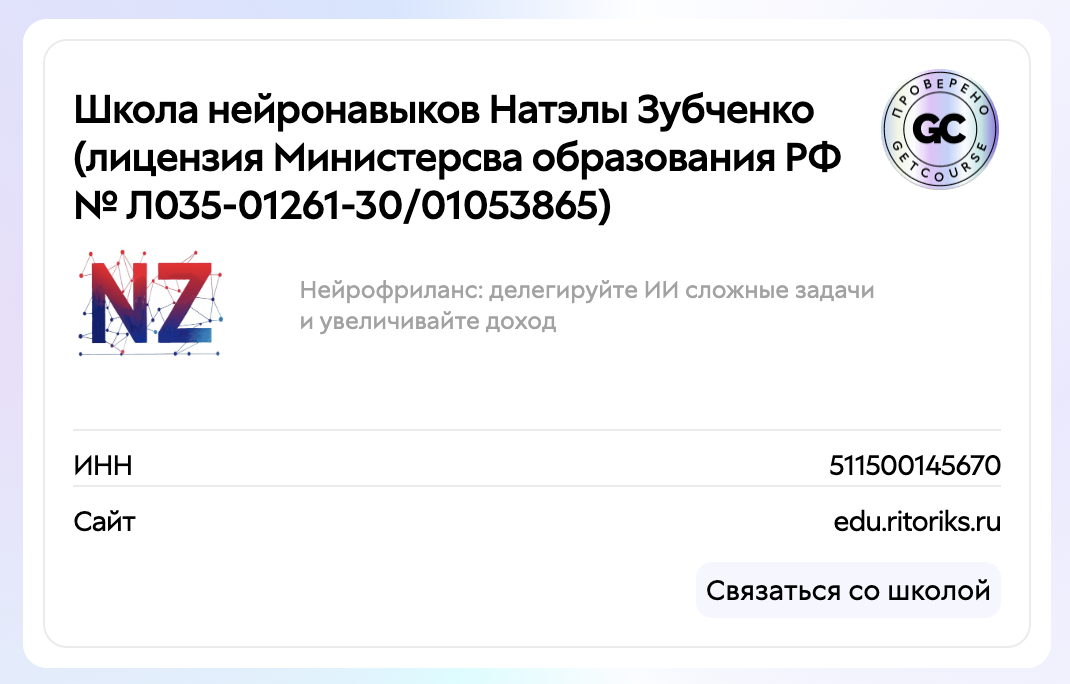 Качество ее обучающих курсов косвенно подтверждает платформа Getcourse. Модераторы этого сайта проверили онлайн-проект и включили Школу нейронавыков в свой реестр.