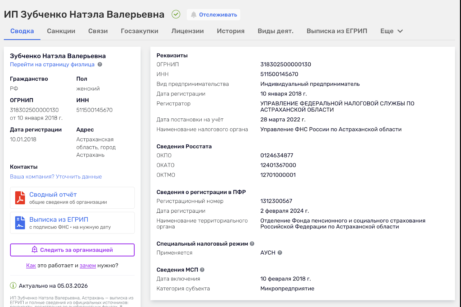 Основной онлайн-ресурс расположен по адресу Edu Ritoriks Ru и работает законно. Коммерческую деятельность наставница ведет от имени ИП Зубченко Натэла Валерьевна, ИНН: 511500145670, зарегистрирована в Астрахани. Основным видом деятельности указано дополнительное образование детей и взрослых. Микропредприятие получило лицензию на предоставление этого вида услуг.