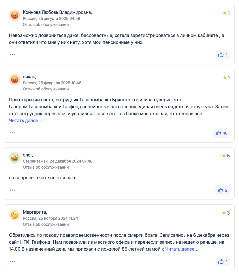 - в интернете есть отзывы людей, которые утверждают, что менеджеры «Газфонд НПФ» вводят клиентов в заблуждение и плохо обслуживают;